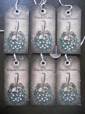 Title (ebay affiliate link): MISTLETOE primitive christmas PRIMITIVE TAGS scrapbook CHRISTMAS GIFT TAGS prim