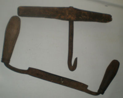 Title (ebay affiliate link): Vintage Farm Tools -- Hook with Wooden Handle -- 2 Handled Blade -- Iron