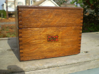 VINTAGE WEIS OAK WOODEN FILE BOX WOOD LIBRARY 3x5 CARDS OLD CASE RECIPE CHEST