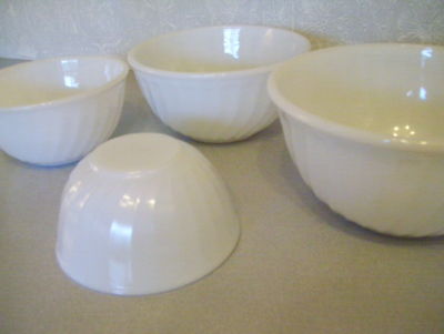 SET of 4 CHRISTMAS WHITE swirl design milk glass mixing,serving bowls,FIRE KING