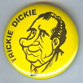 TRICKIE DICKIE ANTI NIXON CARTOON POLITICAL PIN