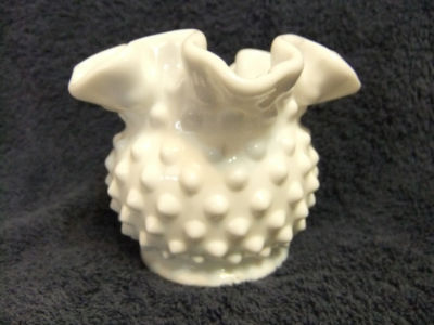 WHITE HOBNAIL MILK GLASS FENTON DISH, SCALLOPED TOP