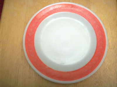 ANCHOR HOCKING FIRE KING 350 MILK GLASS 9 INCH DINNER PLATE RED LEAF EDGE