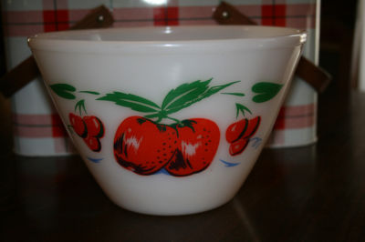 VINTAGE FIRE-KING RED APPLE CHERRY KITCHEN MIXING BOWL MILK GLASS WHITE
