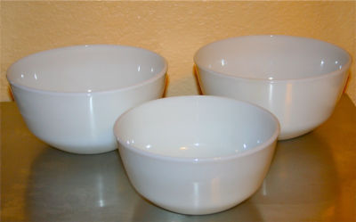 VINTAGE MILK GLASS MIXING BOWL-2 LARGE & 1 SMALL-ANCHOR HOCKING-KITCHEN-COOKWARE