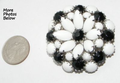 Title (ebay affiliate link): Vintage black & white milk glass Rhinestone BROOCH Pin costume jewelry big