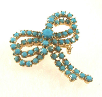 Vintage Blue Milk Glass Rhinestone Brooch Bow