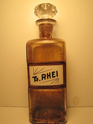 Title (ebay affiliate link): LABEL UNDER GLASS APOTHECARY PHARMACY BOTTLE - TR. RHEI - F & S ST LOUIS MO 1894
