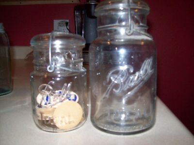 Title (ebay affiliate link): Ball Ideal Canning Jar w/Glass Lid Pat'd July 14, 1908 #2, vintage - milk caps
