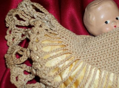 Antique German Christmas Angel Ornament ~ Composition w/ Satin & Crochet Wings