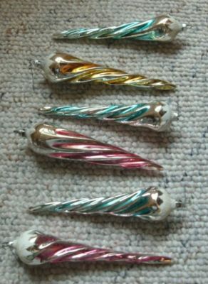 VTG. 6 WEST GERMANY ICICLE CHRISTMAS ORNAMENTS