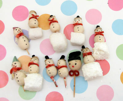 Title (ebay affiliate link): Vintage Lot of Christmas Snowmen Trims/Decorations/Cupcake Toppers..Japan