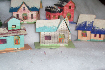 Title (ebay affiliate link): PUTZ VILLAGE 5 CHRISTMAS HOUSES MADE IN JAPAN CARDBOARD MICA