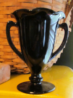 Title (ebay affiliate link): 1930's L.E. Smith Loving or Trophy Cup Black Milk Glass two handled Vase