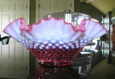 HOBNAIL MILKGLASS/PINK BOWL - VINTAGE 1950'S