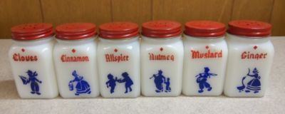 PT Vintage Lot of 6 White Milk Glass Spice Jars NR
