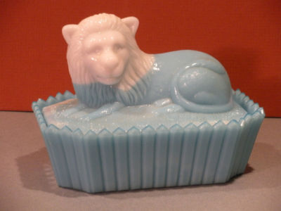 Blue milk glass lion form dish