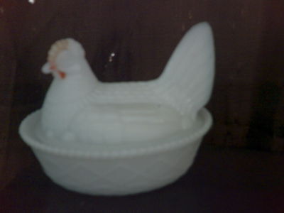Vintage Milk Glass Hen on Nest opalescent westmoreland?