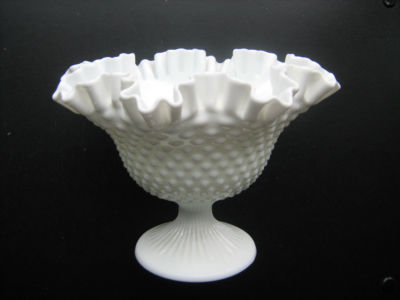 Title (ebay affiliate link): VINTAGE LARGE FENTON White Milk Glass HOBNAIL 9" Compote Pedestal Bowl EXCELLENT