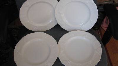 HARVEST GRAPE MILK GLASS DINNER PLATES BY INDIANA GLASS SET OF 4
