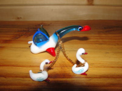 Title (ebay affiliate link): Vintage Blown Glass Miniature Swan Duck Chained Family Murano Cobalt White Milk