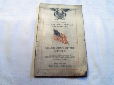 Title (ebay affiliate link): Grand Army Of The Republic Program- 1918 Hamilton, Ohio - 36th Annual Encampment
