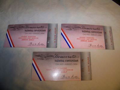 Title (ebay affiliate link): 3 Vintage August 1956 Democratic National Convention Chicago Admission Tickets