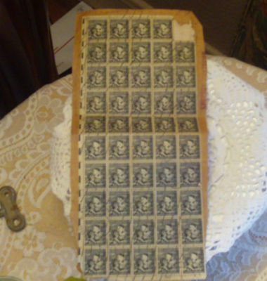 set of 49 cancelled Lincoln 1965 black 4 cent stamps on wrapping Paper Abraham