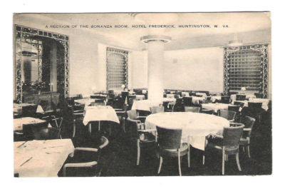 Title (ebay affiliate link): Huntington, W.Va/ Hotel Frederick/ Bonanza Room/dinner tables/old postcard