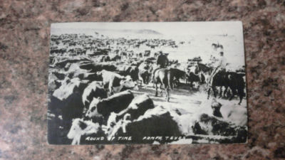 Title (ebay affiliate link): RPPC BLACK AND WHITE CATTLE AND COWBOYS ON HORSEBACK ROUND UP TIME PAMPA TEXAS