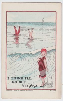 Title (ebay affiliate link): Walter Wellman I Think I'll Go Out to Sea 1908 Swimming Postcard