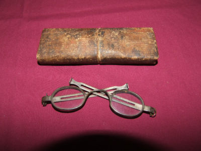 Pair of antique eye glasses and case