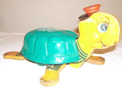 Title (ebay affiliate link): Old Fisher Price Timmy Turtle No.150 musical pull toy 1956 NR