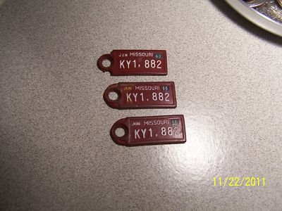 three vintage Missouri mini license plate key chains 1963 and 1966 free shipping