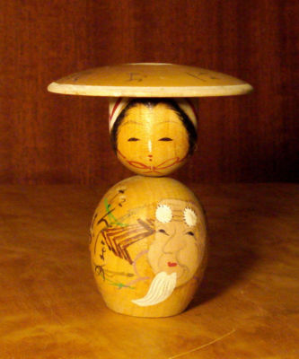 Antique Japanese Kokeshi Doll-Calligraphy