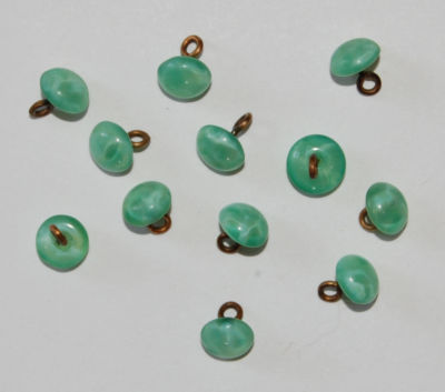 VINTAGE TINY GREEN GLASS DOLL BUTTON OLD ANTIQUE 5mm