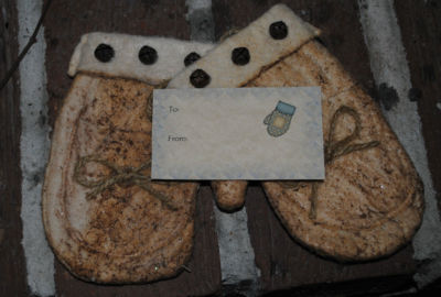 2 pair Primitive Gift Tag Mittens, Christmas, Party Favors, holiday, gift,