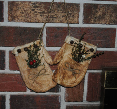 2 pair Primitive Mittens, Christmas, ornies, bowl filler, tucks, holiday, favors