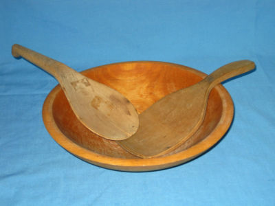 Title (ebay affiliate link): Antique Primitive Wood/Wooden Butter Dough Bowl W/ 2 Paddles/Spoons!