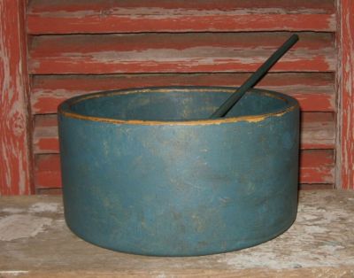 Title (ebay affiliate link): BiG Vintage Wood BOWL*Antique Primitive BLUE*+SPOON*Primitive Decor Centerpiece