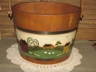 Title (ebay affiliate link): Hand painted Vintage Basketville wooden bucket pail saltbox primitive folkart