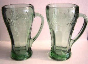 HEAVY COCA COLA GREEN MUGS SET OF 2