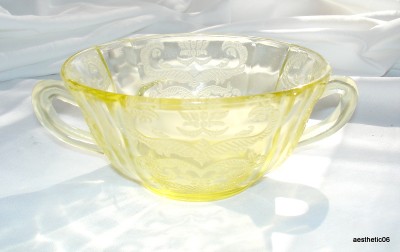 Title (ebay affiliate link): Yellow-Green Unusual Depression Glass Bowl with crazing