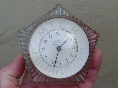 Title (ebay affiliate link): An Antique Glass Advertising Desk Clock(Lehmann & Co London)c1930