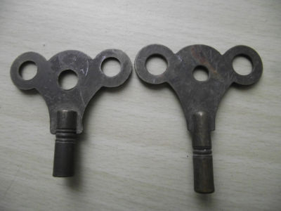 2 ANTIQUE BRASS FUSEE CLOCKS KEYS BOTH 4 MM SEE PICS