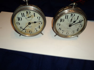 2 Antique Old Early Big Ben Alarm Clock Peg Leg Nickle Plate westclox big ben