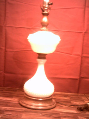 VINTAGE MILKGLASS "HOBNAIL" GLASS & WOOD TABLE LAMP
