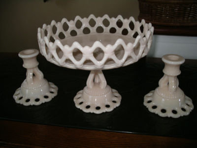 WESTMORELAND MILK GLASS DORIC CENTERPIECE SET