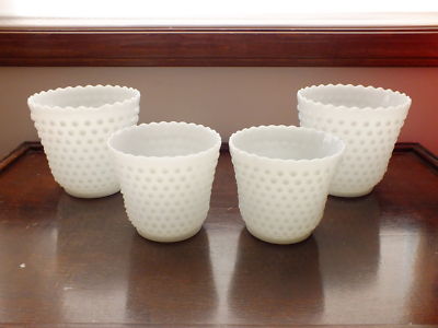 SET OF 4 Anchor Hocking MILK GLASS Jardinere VASES Planters HOBNAIL Fire King