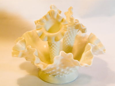 VINTAGE MILK GLASS FLOWER FROG VASE BOWL